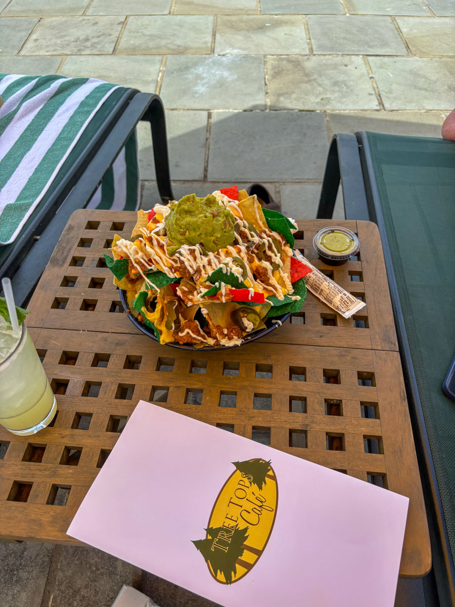 If you’re lounging by the pool, Tree Tops Café is a solid choice. Service here was excellent, with attentive staff keeping drinks and snacks flowing. The nachos were generous, and drinks were refreshing—perfect for a light, poolside bite.