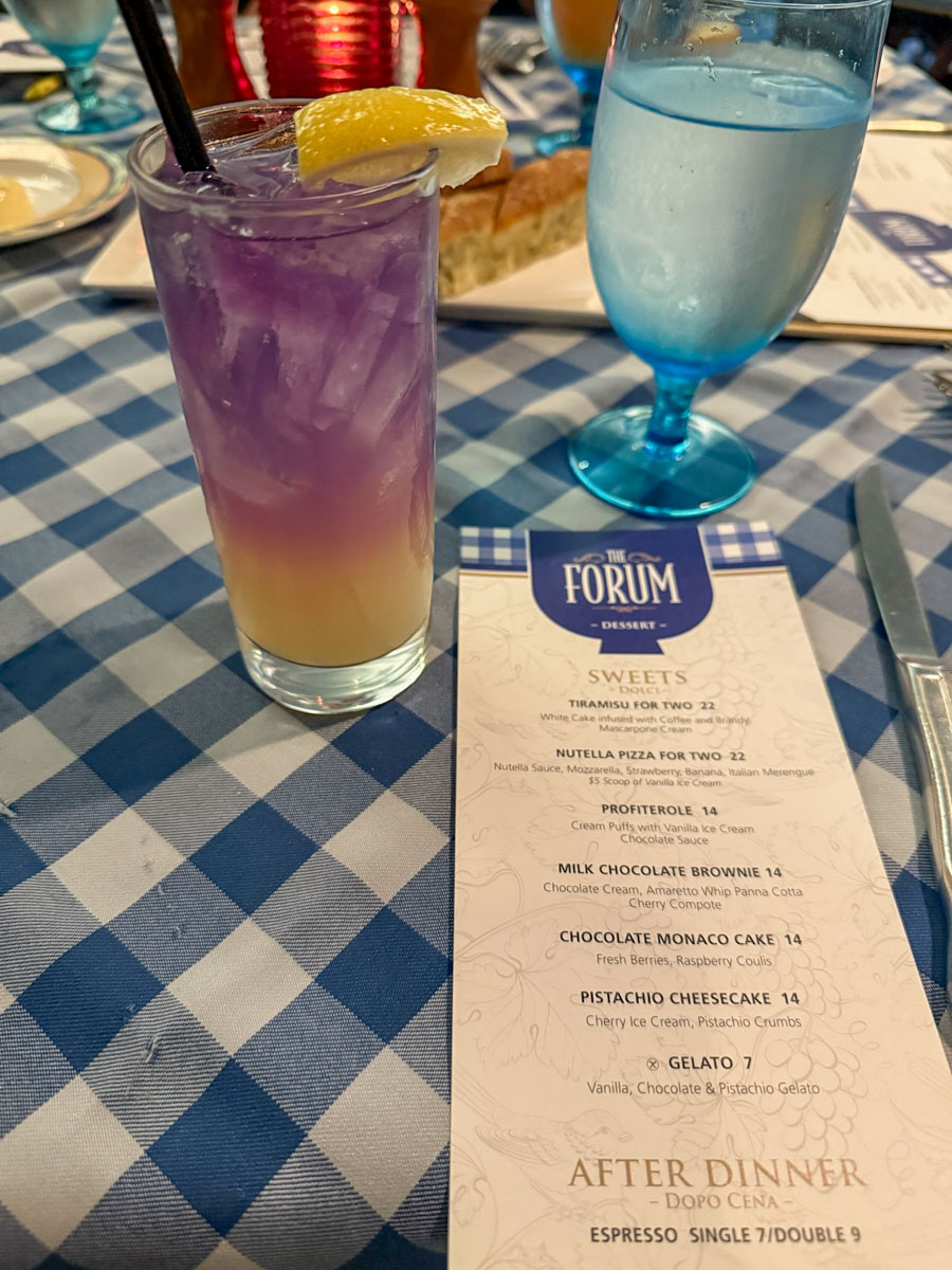 Located in the casino, In-Fusion is the resort’s Asian-fusion option, accessible to guests 21 and older. Unfortunately, this was one of our most disappointing meals. The menu looked promising, but the execution fell flat, and the near-empty dining room didn’t help. We recommend skipping this one.