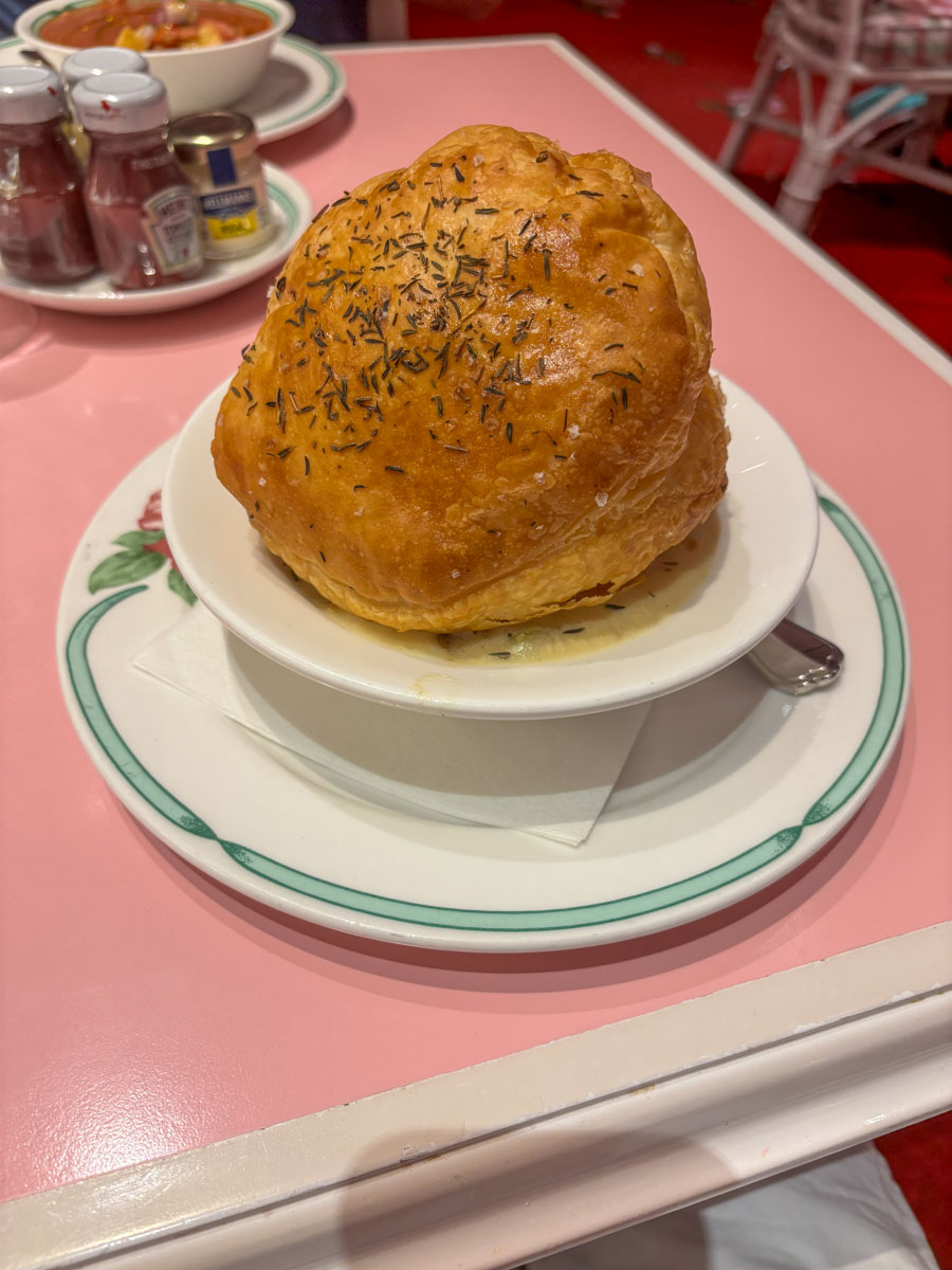 The Main Dining Room is the resort’s centerpiece, with crystal chandeliers, live piano music, and a Southern Plantation Ballroom feel. It carries the strictest dress code—men over 10 must wear jackets—but the elegance doesn’t extend to the food or service. Meals were perfectly edible but entirely unremarkable, leaving us underwhelmed compared to the surroundings and price point.