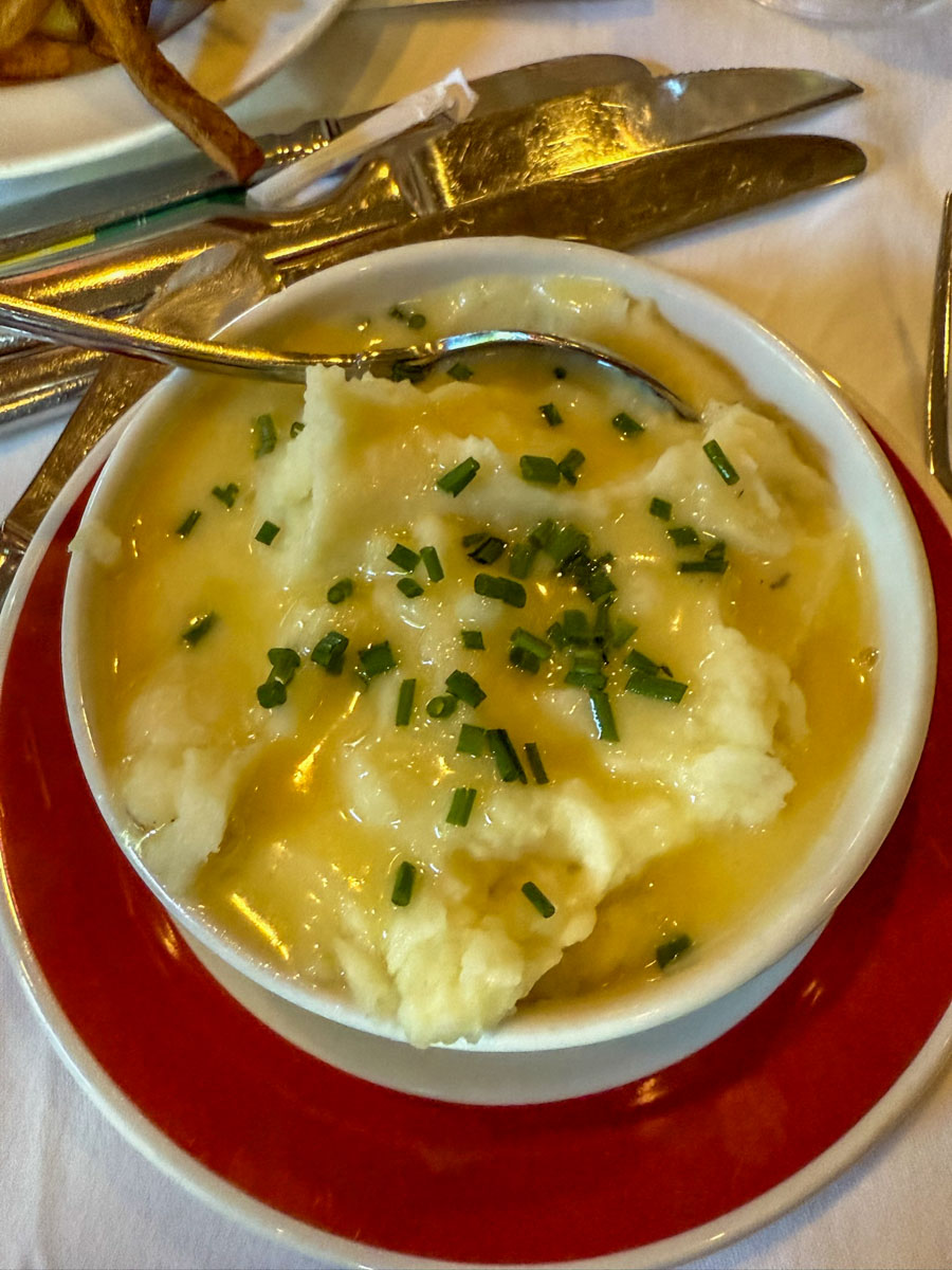 Prime 44 West impressed with tableside preparations like Caesar salad, Dover Sole, and Bananas Foster. The menu offers a wide variety of sides and proteins, and the wine list is solid. Service, however, fell short: timing was off, the sommelier wasn’t particularly knowledgeable, and the Bananas Foster came with an overpowering alcohol taste. We ate here twice and had adequate meals, but the overall execution didn’t live up to the atmosphere.